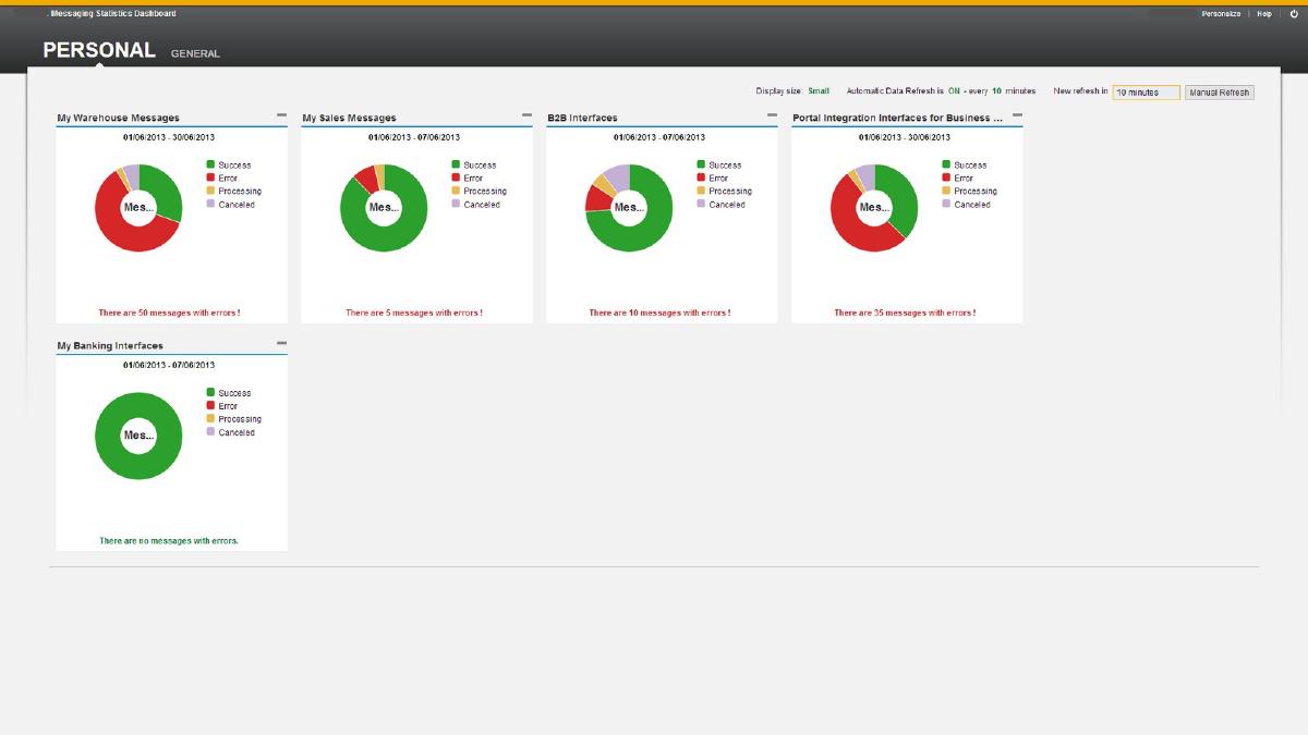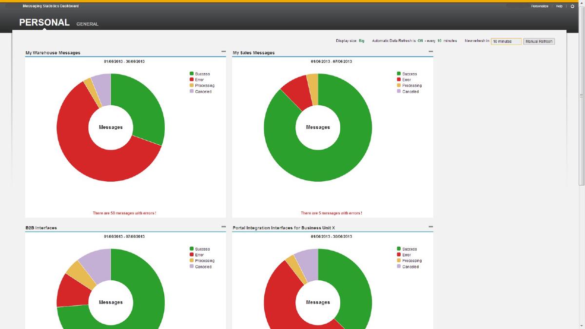 The SAPUI5 Messaging Dashboard gives end users a graphical overview of the health of their SAP PI message interfaces — without requiring access to the SAP PI system itself.