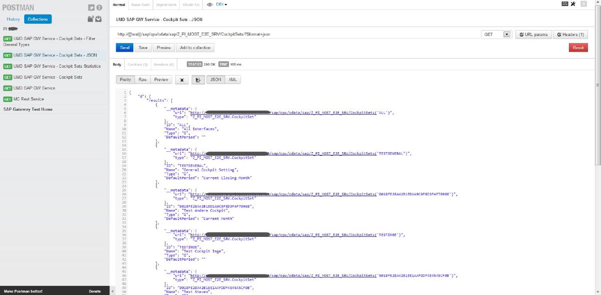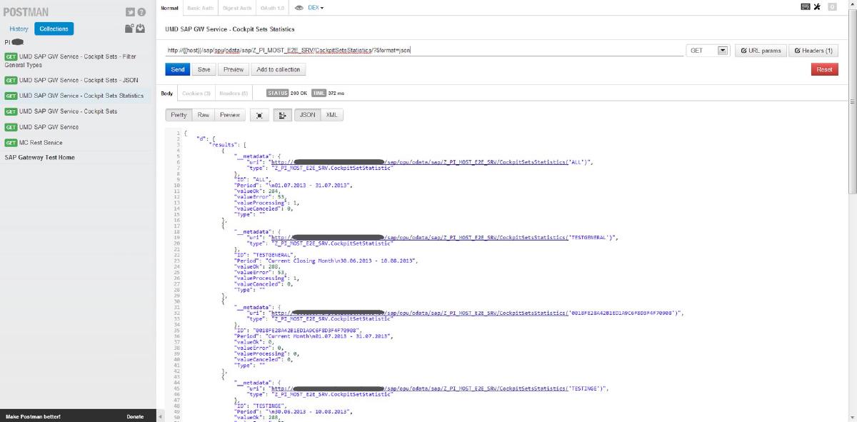 SAP Gateway (add-on on SAP PI) exposes two OData entity sets used by the application: