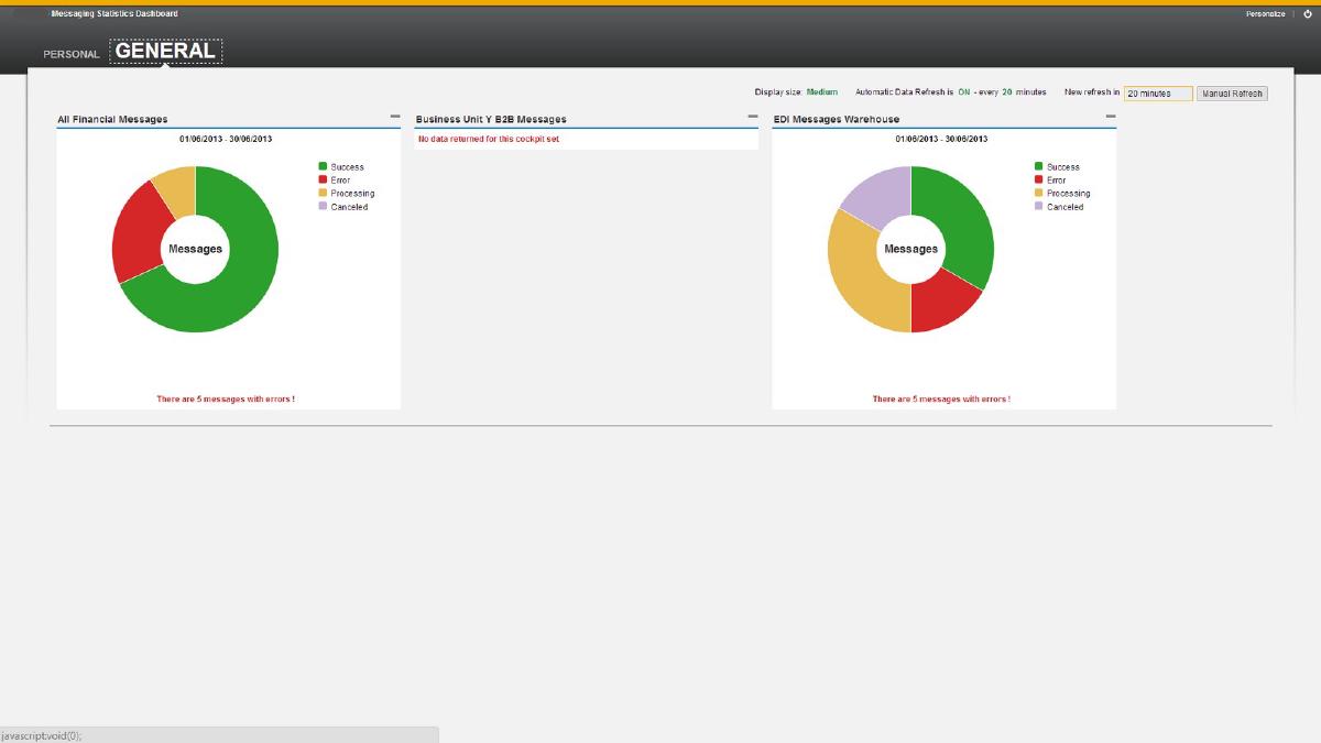 - Dashboards of messaging statistics for personal and general cockpit sets