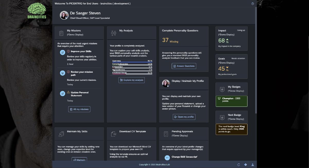 Custom cloud HR solution for Human capital management providing human-centric employee personal and professional skilss managent and training including personality BIG5 analysis, skills evaluation, training and gamafication for employee’s.